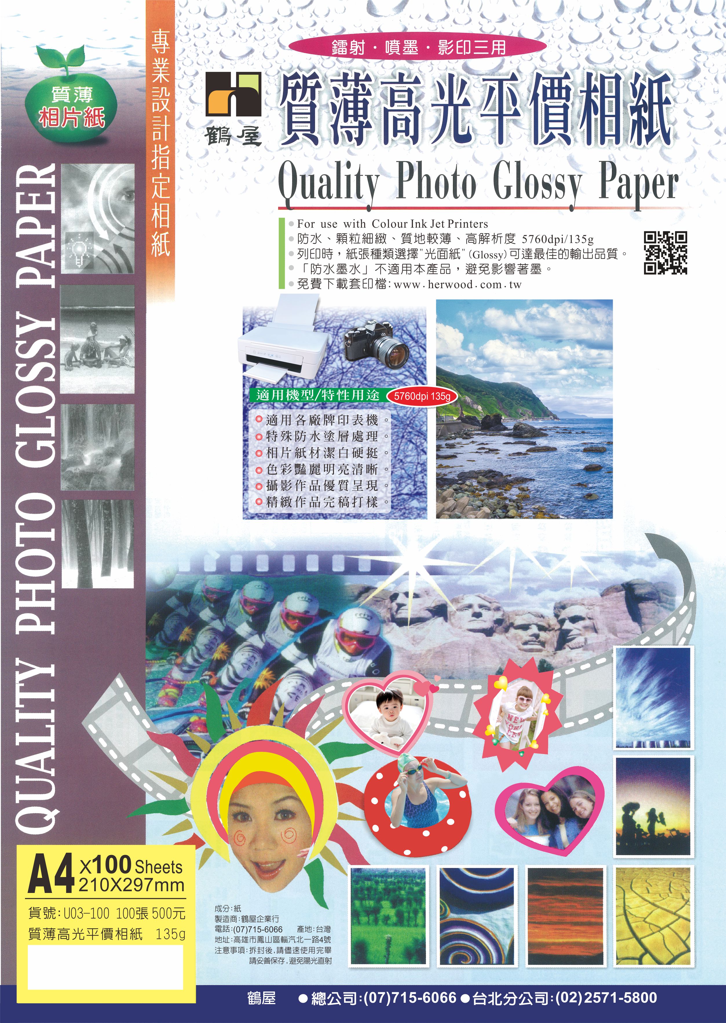 U03-100 A4質薄高光平價相紙135g(100張/包)